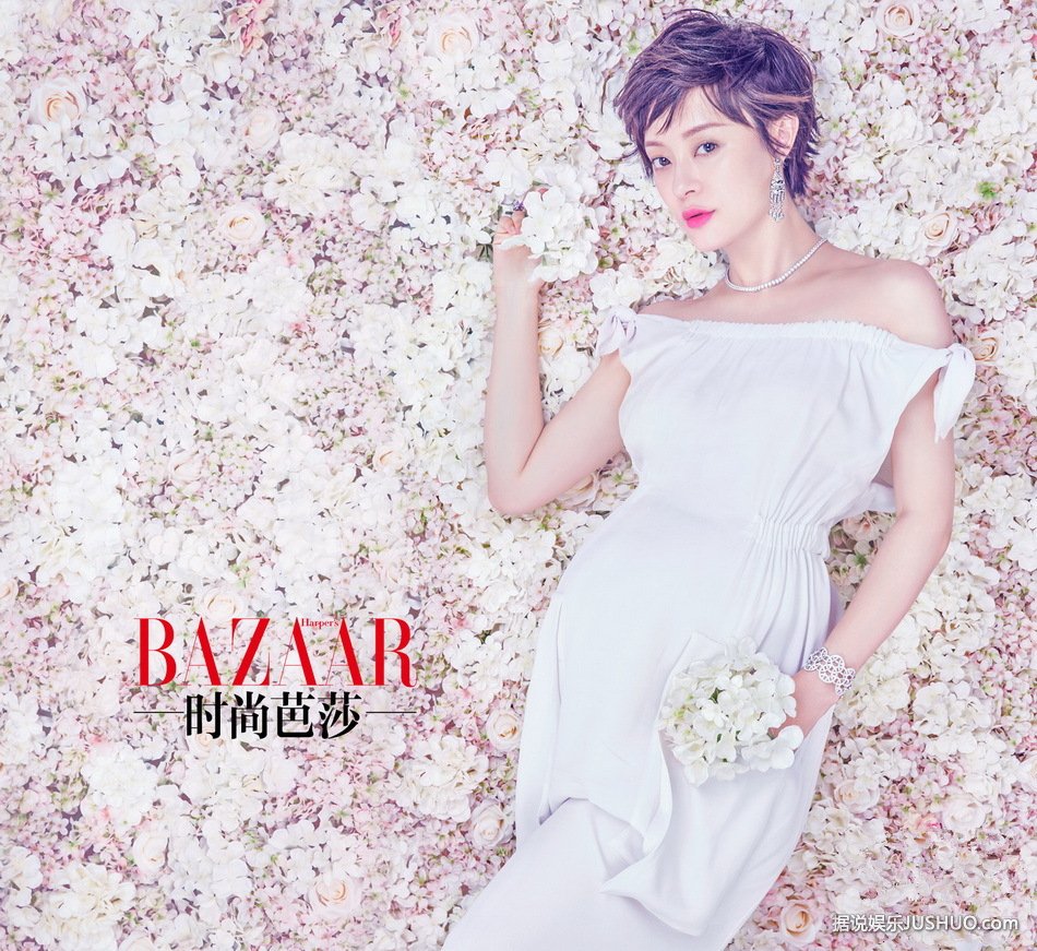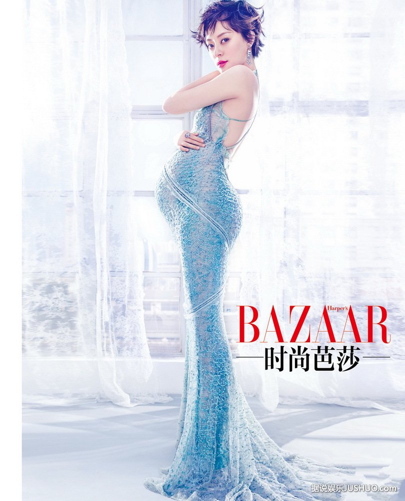 怀孕中的孙俪登上时尚芭莎某杂志的封面,挺着孕肚的她体态依旧婀娜,拍照时表情也很俏皮。