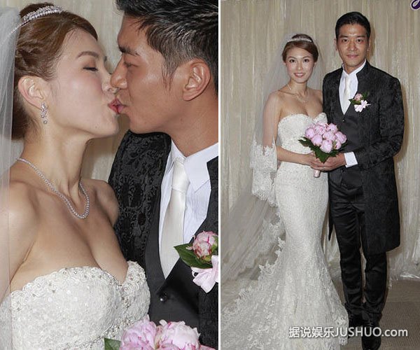 下午4点半,一对新人注册后会见传媒,新娘李洁莹换上性感低胸婚纱,与黎诺懿应记者要求两度甜蜜亲嘴,有次长达5秒。黎诺懿透露接新娘时姐妹团很爱惜他,玩了3个简单游戏包括咬水泡饼、转圈及饮奶樽就过关了。