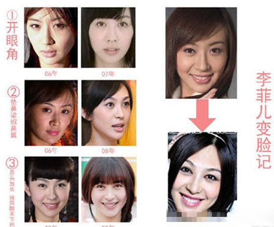 李菲儿整容前后照片曝光引出裙子滑落 被疑是为爱整容