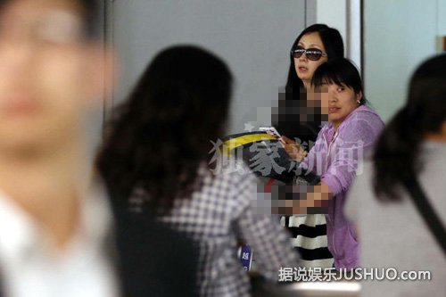 当天,陶虹以黑白两色的条纹蓬蓬裙搭配黑色小外套现身,素颜以一副墨镜遮面。女儿徐小宝牛仔外套里一件黑色裙子,搭配红色打底袜,调皮地坐到了行李车上,自来卷的头发别上一只粉色的小卡子,样子萌萌哒。