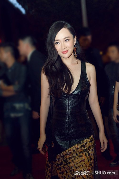 霍思燕穿深V皮裙秀事业线 腹部有小赘肉产后身材难恢复