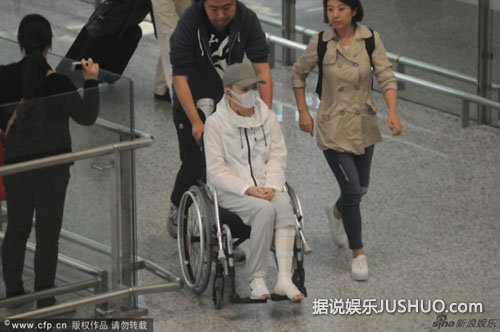 宋丹丹摔跤致骨裂 坐轮椅低调戴口罩