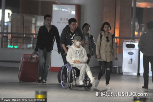 近日左脚骨裂的宋丹丹出现在机场,由于不小心摔跤导致骨裂,宋丹丹在助手的帮助下离开机场,当天坐在轮椅上的宋丹丹戴着帽子口罩,避免被认出。