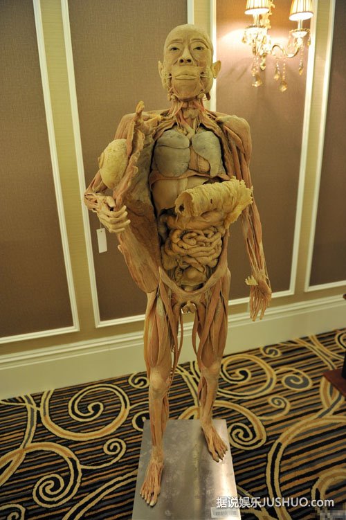 2014年12月11日,辽宁省沈阳市,某地产商在售楼中心举办“人体、海洋生物展”,其中一尊女性人体标本夸张的将自己躯干大开,让观众一目了然,被观众戏称“敞开心扉”。