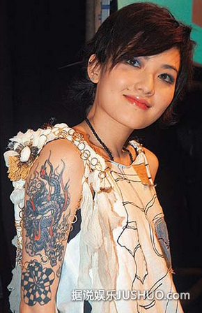 范晓萱的纹身很多,全身有12处以上,右手臂膀有一个龙的文身,龙头边有一个阴阳八卦,都是道教的宗教符号。她全身有十多个纹身,这