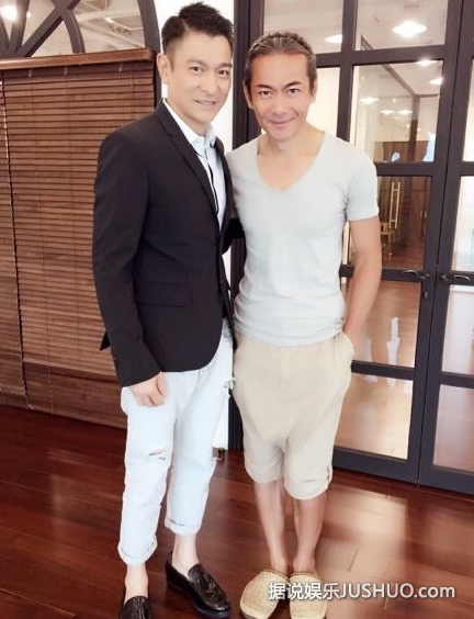 8月26日下午,江华在微博晒和刘德华合影,照片中,刘德华穿着西装配破洞牛仔裤,江华一手插在裤兜,一手和刘德华勾肩搭背亲密合影,两人微笑面对镜头,非常的帅气,看上去两人还似乎有点相像,犹如亲兄弟。没想到两个五十多岁的男人站在一起这么养眼,丝毫看不出岁月的痕迹啊。