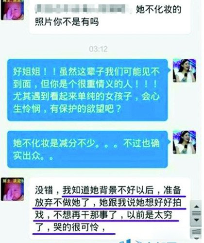 在赵丽颖“黑粉”贴出的与赫茹私信截图中,赫茹表示:“我知道她背景不好以后,准备放弃不做她了,她跟我说我想好好拍戏,不想再干那事了,以前是太穷,哭得很可怜。”赫茹口中的“那事”,令人浮想联翩。