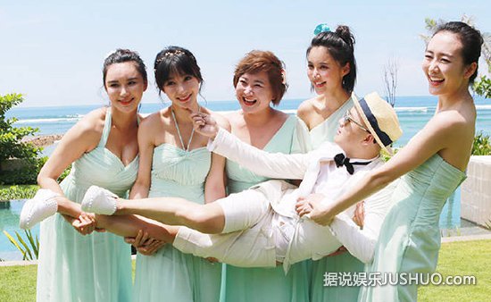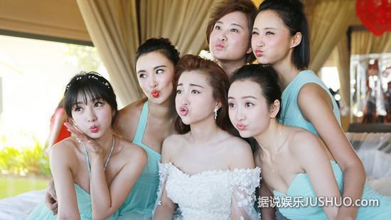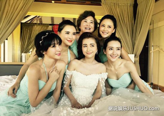 柳岩、贾玲、张歆艺、王鸥和莫小棋为伴娘团;