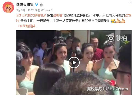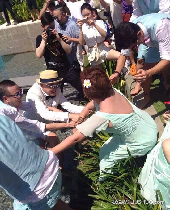 包贝尔婚礼上,柳岩遭伴郎团戏弄险被扔下水