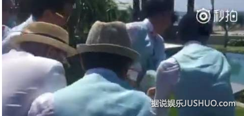柳岩全程尖叫拼命抵抗,然而5个壮男还是把她抬到了泳池边,劝柳岩就范,一直在说“很浅”;