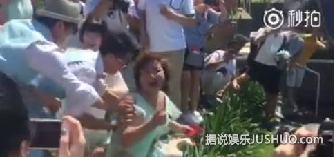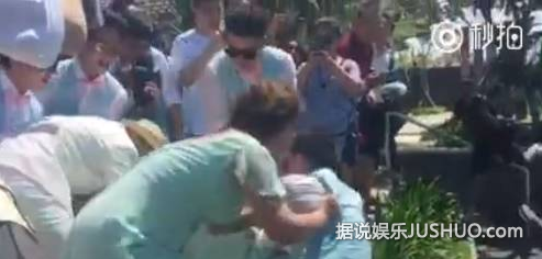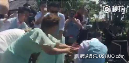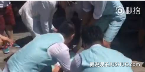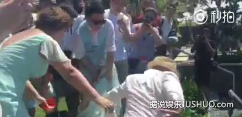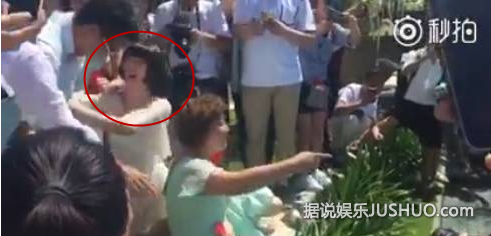 柳岩被推倒在地;