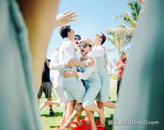 王祖蓝、韩庚、杜海涛、李灿森和曾一竣为伴郎团;