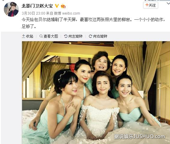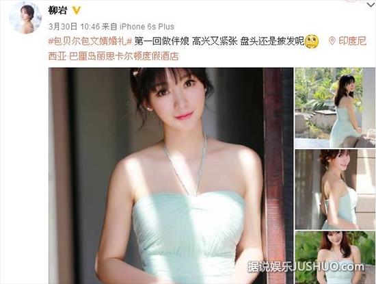 从她微博来看,她是第一次做伴娘,还表达了紧张和激动;