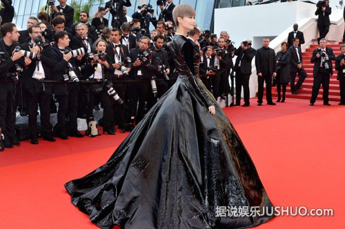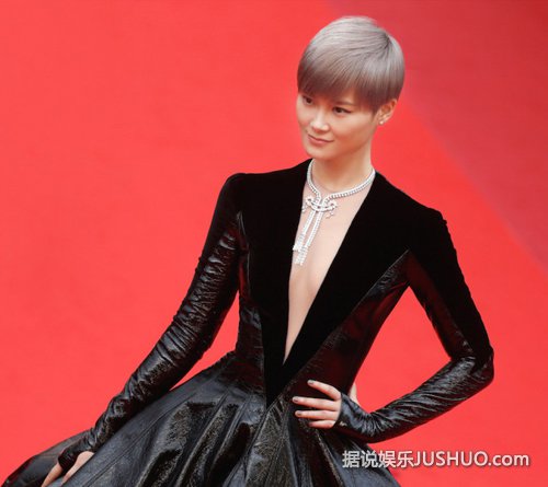 李宇春亮相戛纳红毯 身穿黑色深V长裙 宛若灵动的“黑天鹅”